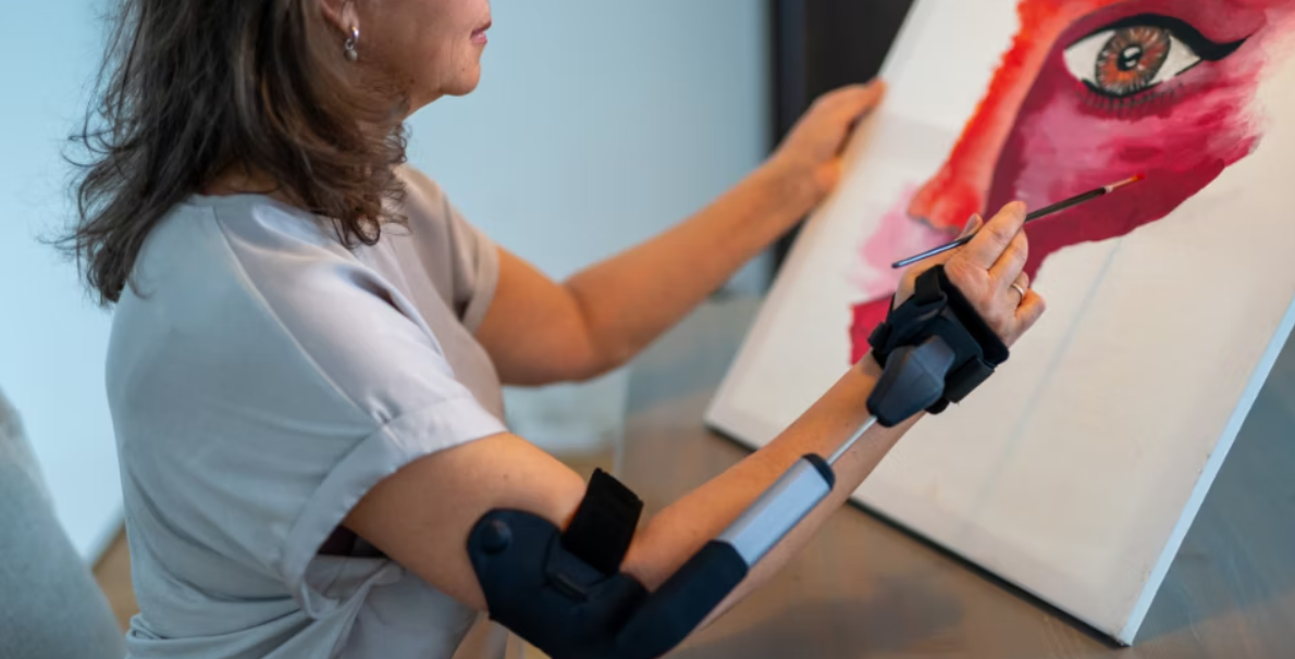 The STIL orthosis mechanically stabilizes the arm. It dampens uncontrolled movements without restricting natural motion. The effect is immediate. No electricity is required. The orthosis is easy to put on and adjust, even at older ages. Medical supply providers and orthopedic specialists support patients locally.